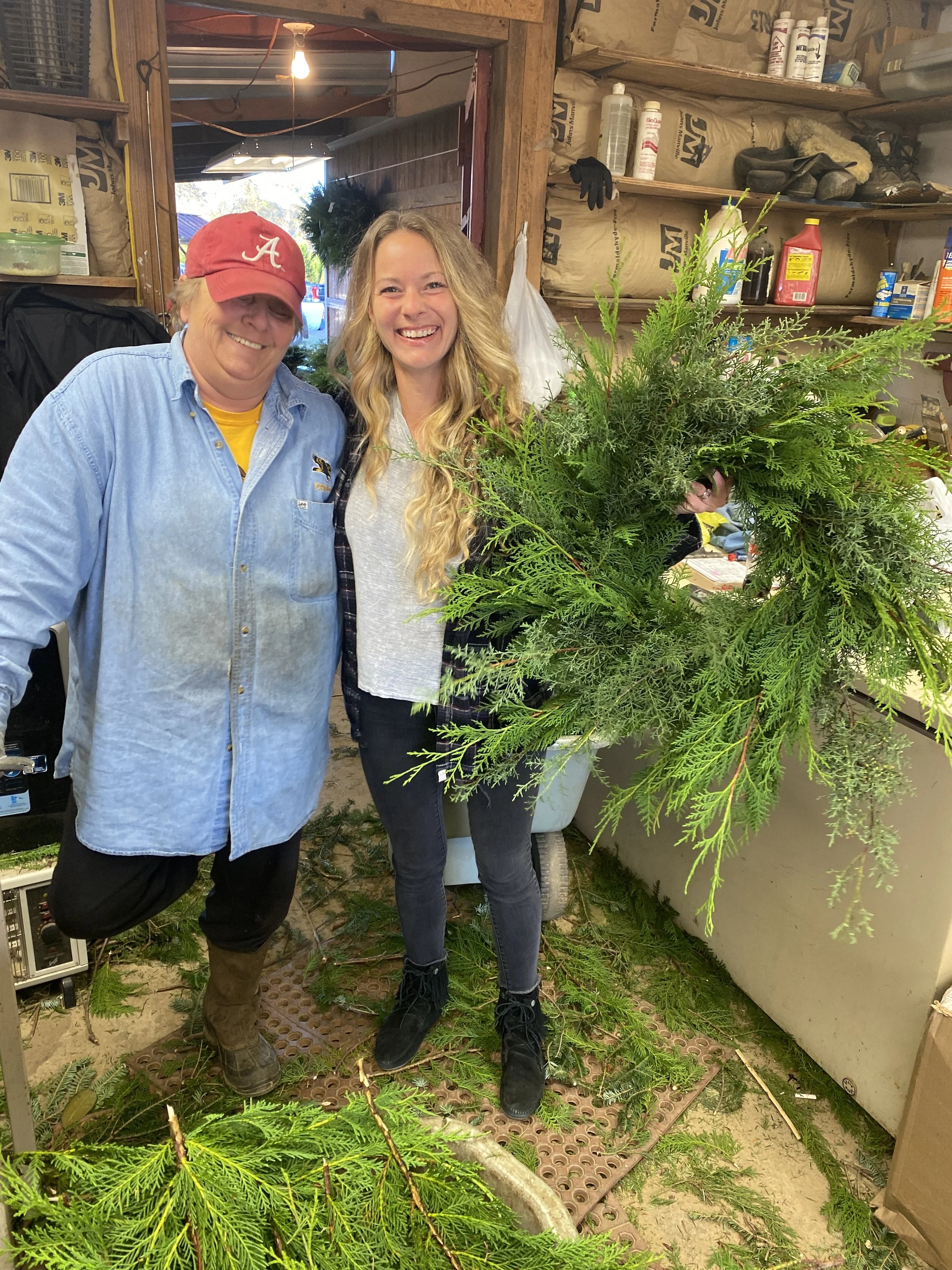 We can also Flock your tree which is adding a White snow like substance, if your looking for that winter wonderland look. Fresh Wreaths and Garland are also another big item at our farm. Customers should place their orders early to insure delivery of fresh hand made wreaths and garland.