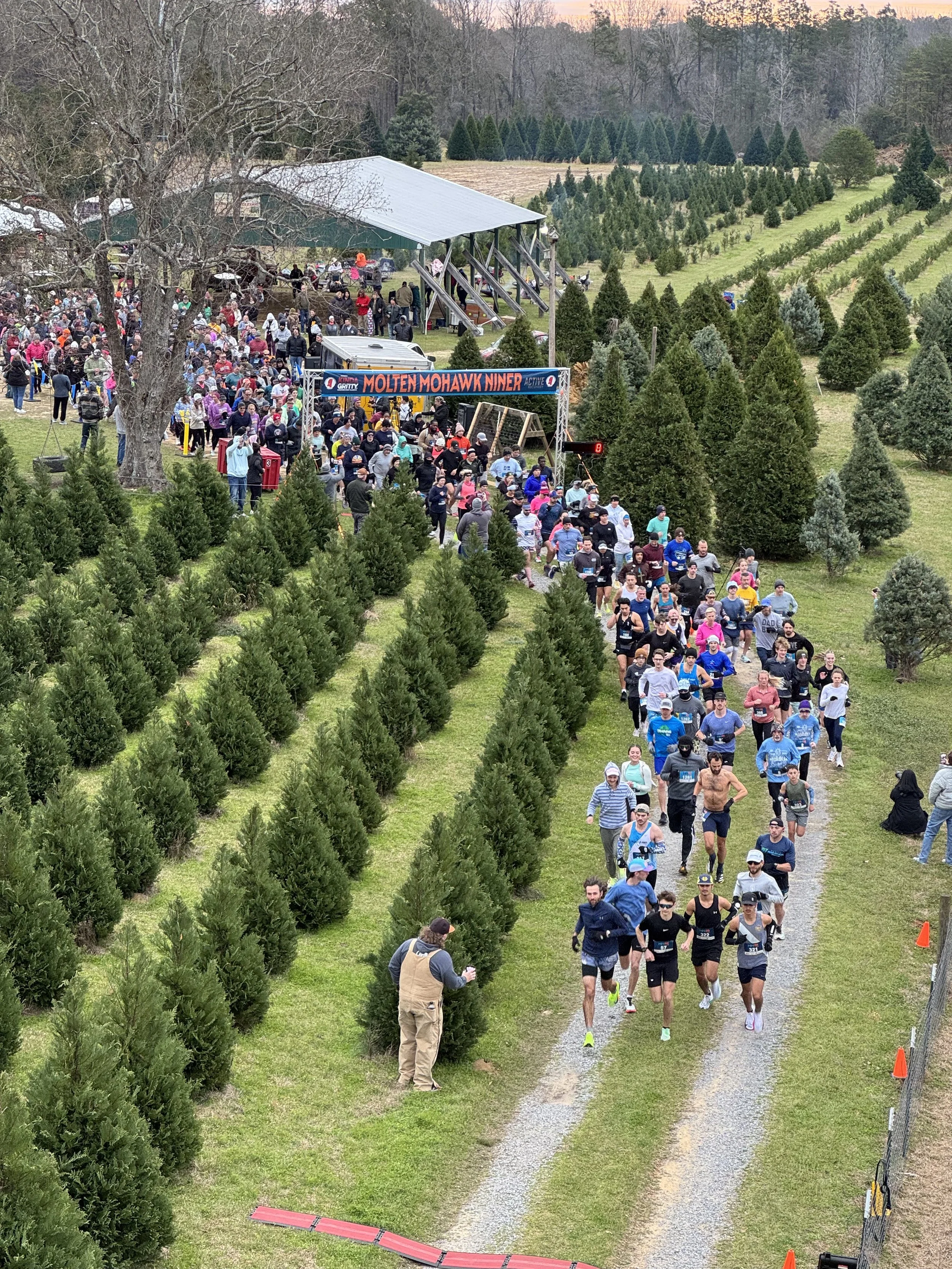 In 1931 Veroy & Clara Thomley bought the original 60 acres for $1,500. People say Veroy “could put a stick in the ground and it would grow”. In 1967 Howard and Mamie Thomley began growing Christmas trees. They raised Randy(my Father) & Cindy Thomley here on the Farm. My Dad ran the farm for 13 years after Grandaddy died, growing the Tree Farm to over 10,000 trees! Daniel Bell & Jeremy Thomley started the Glassblowing Studio in 2016. In 2020 Jeremy & Lindsay Thomley bought the Farm. Tourism increased after being featured on HGTV’s Hometown and we renovated the Farmhouse to be an AirBnb in 2021. In 2024 the Gift Shop became “The Roost”, our second AirBnB in the off season. In 2024 the Mohawk Molten Niner Race began, we had runners from 16 states and it keeps growing. The MM9R Race is in Feb, there is a 4&9 Mile option. We made 725 glass Race medals for the 2025 race. It has been an incredible partnership with Rhonda at Kinda Gritty. The Farm evolved again when Jeremy’s Wife Lindsay began the Thomley’s Farmers Markets from April-Aug & Fall & Holiday Vendor Markets in 2024. You can find the latest Market info on Thomley’s Facebook Page.